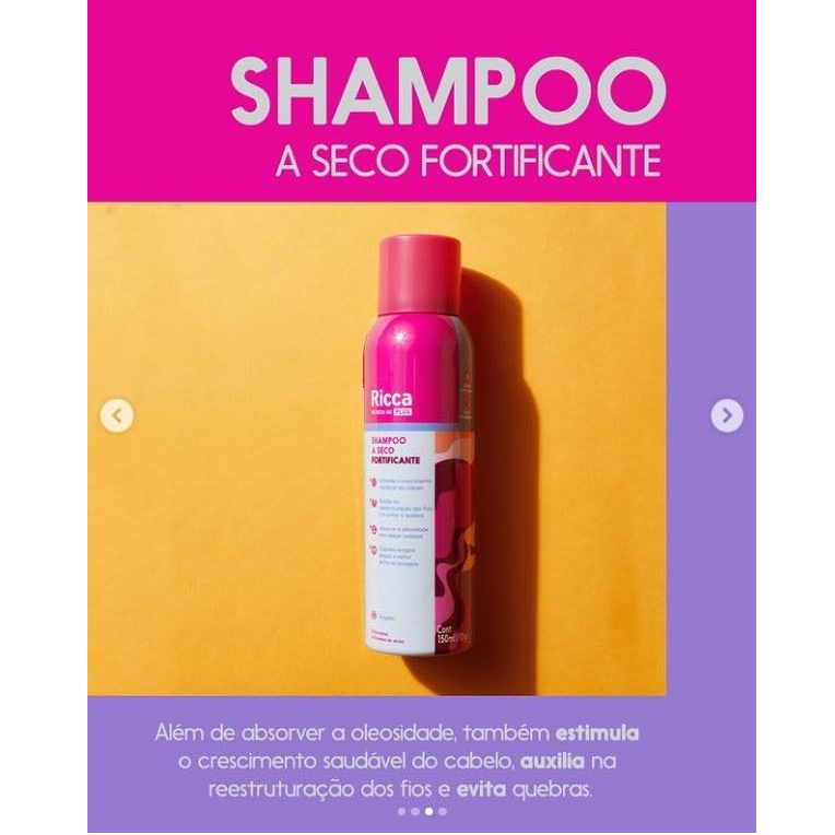 O Shampoo a Seco Fortificante Ricca absorve instantaneamente a oleosidade dos fios, sem deixar resíduos e ainda estimula o crescimento saudável e mais forte do cabelo. Com D-Pantenol e Queratina, auxilia na reestruturação dos fios e a evitar a quebra. Não é a combinação perfeita? O shampoo a seco que você já sabe que te salva quando não dá tempo de lavar os cabelos, com mais um benefício para ajudar seus cabelos a crescerem mais fortes e bonitos.