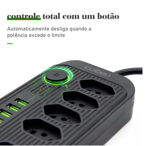 Extensão 5 Tomadas E 4 Usb 1 Pd Led Bivolt