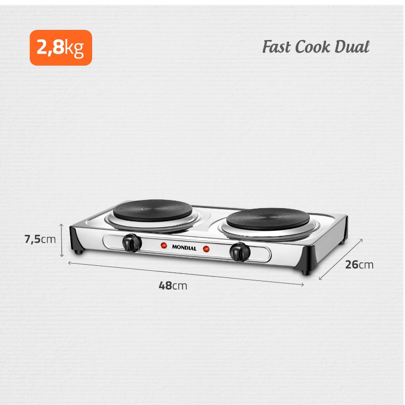 Fogão Elétrico Fast Cook Due, Mondial,110V - FE-03
