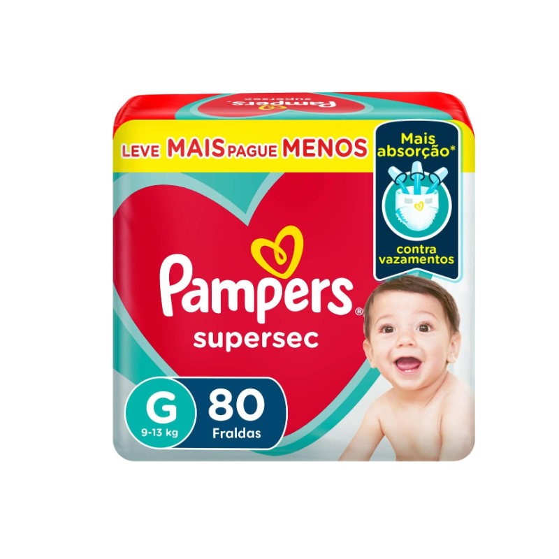 Pampers Supersec mantém seu bebê mais seco do que outras fraldas* por 1 noite inteira, porque somente Pampers Supersec tem canais extra-absorventes exclusivos, que distribuem o xixi uniformemente e impedem que ele entre em contato com a pele do seu bebê. Então, você muda menos e economiza mais.
