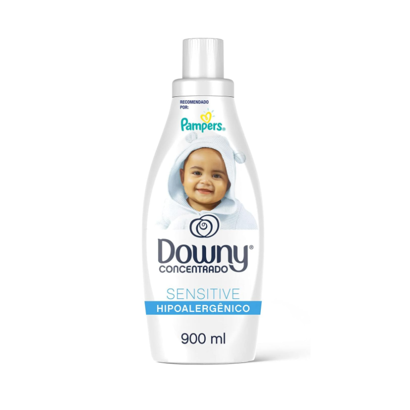 Amaciante concentrado Downy Sensitive que deixa as roupas do seu bebê com um perfume suave o dia todo. Todo mundo sabe que nos primeiros meses de vida o organismo do bebê e sua pele são extremamente sensíveis. Assim, suas roupinhas devem ser lavadas com produtos que não causem nenhum tipo de alergia. Downy Sensitive é hipoalergênico, dermatologicamente testado e recomendado por Pampers, por isso é o amaciante ideal para a lavagem das roupinhas dos pequenos, deixando-as com perfume suave e duradouro. Por ser concentrado, 900 ml de Downy é equivalente a 3,6L de um amaciante diluído comum. Isso significa que ele rende até 40 lavages. Para garantir um melhor uso, utilize apenas a quantidade de amaciante indicada na embalagem do produto.