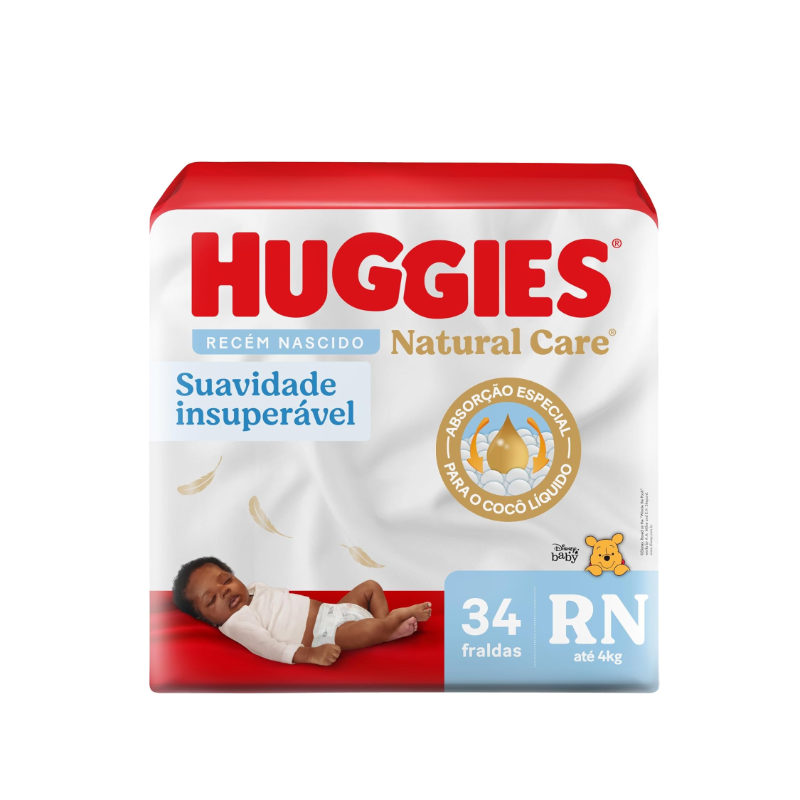A Huggies Natural Care Premium para recém nascidos é a escolha ideal para a proteção máxima da pele do seu bebê, incluindo o cuidado especial com o cordão umbilical. Com um corte umbilical integrado, evitamos atrito com o umbigo do bebê. A cobertura macia e respirável proporciona conforto extra, cuidando delicadamente desde os primeiros momentos. Além disso, oferece um toque suave como algodão e tecnologia avançada para uma sensação de sempre sequinho. Hipoalergênica e sem parabenos, a Huggies Natural Care foi pensada para proteger a pele do seu bebê contra assaduras por até 12 horas, com uma tecnologia especialmente desenvolvida para a melhor absorção de cocô líquido, sem vazamentos. Os elásticos na cintura proporcionam mais liberdade de movimento, garantindo uma experiência completa de cuidado e conforto.