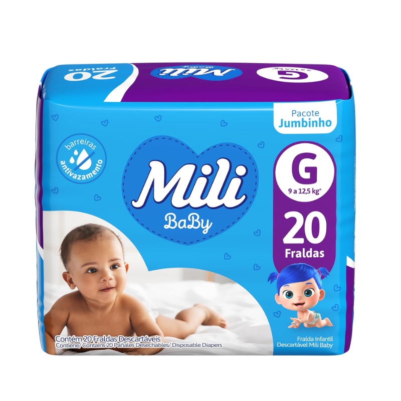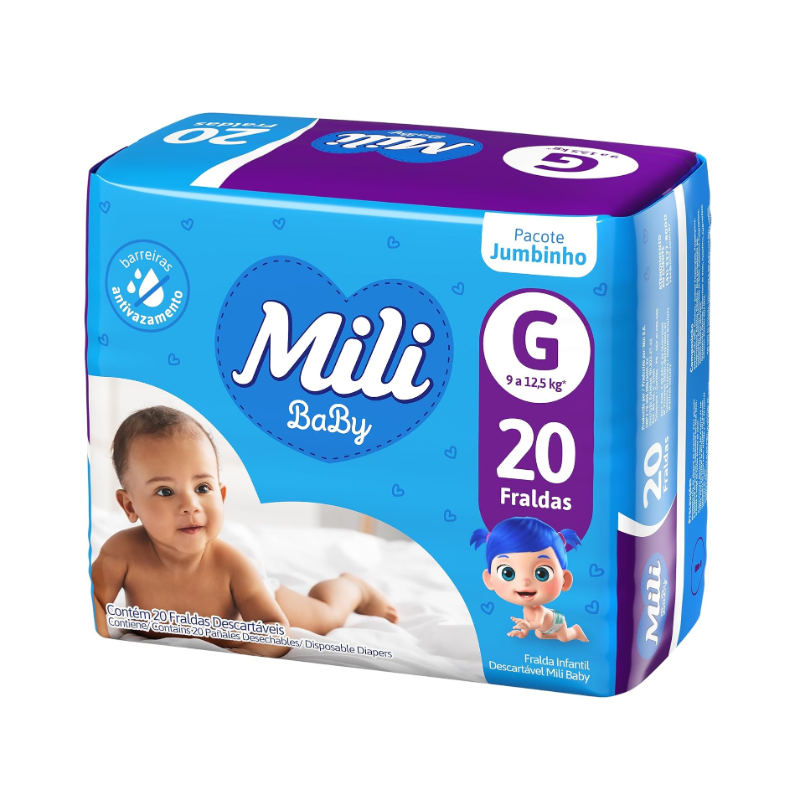 A Fralda Mili Baby mantém o seu bebê sempre sequinho, porque possui quatro camadas de proteção e absorção. Contém barreiras laterais protetoras contra vazamentos, que se adaptam confortavelmente à perna do bebê. Além disso, conta com fita reajustável, que possibilita a abertura e o fechamento da fralda quantas vezes forem necessárias, até o ajuste perfeito ao corpo do bebê, sem danificar a fralda.