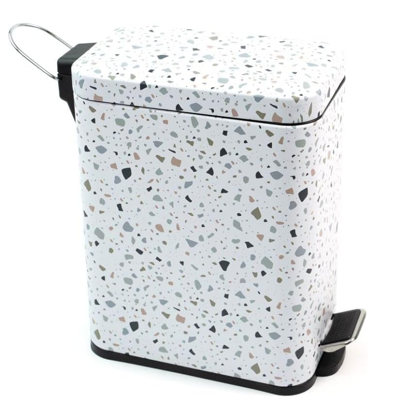 :: essa é a lixeira retangular de metal com pedal granilite 5L da OIKOS.:: funcional: sua casa sempre limpa e organizada. muito prático, esse item é mesmo uma mão na roda na hora de descartar e armazenar o lixo no lixo :) :: versátil: fica bem em qualquer espaço – do banheiro à lavanderia, da cozinha ao escritório – onde você quiser.:: com pedal acoplado: sua tampa, além de evita o mau cheiro nos cômodos, é acionada por um pedal. prática e muito mais higiênica, já que não é necessário encostar para fazer descartes, isto reduz – e muito – a proliferação de bactérias.:: com balde removível: muito fácil de jogar fora o lixo. a alça ainda ajuda a esconder as beiradas da sacola, além de não deixar sair do lugar.:: granilite: estampa decorativa com formas irregulares, modernas e coloridas. por conta do seu fundo neutro, ela vai bem em diferentes estilos decorativos. que tal uma pitada da tendência urbana e contemporânea dentro de casa?:: retangular: seu formato mais estreito nas laterais otimiza os espaços e facilita o posicionamento em lugares apertados.:: corpo de metal: muita resistência e longa durabilidade.:: capacidade: 5L.:: medidas: 57.5x31.5x32cm. :: cuidados: lave com água e sabão neutro em seguida passe suavemente um pano seco. não utilize produtos químicos ou abrasivos na limpeza.