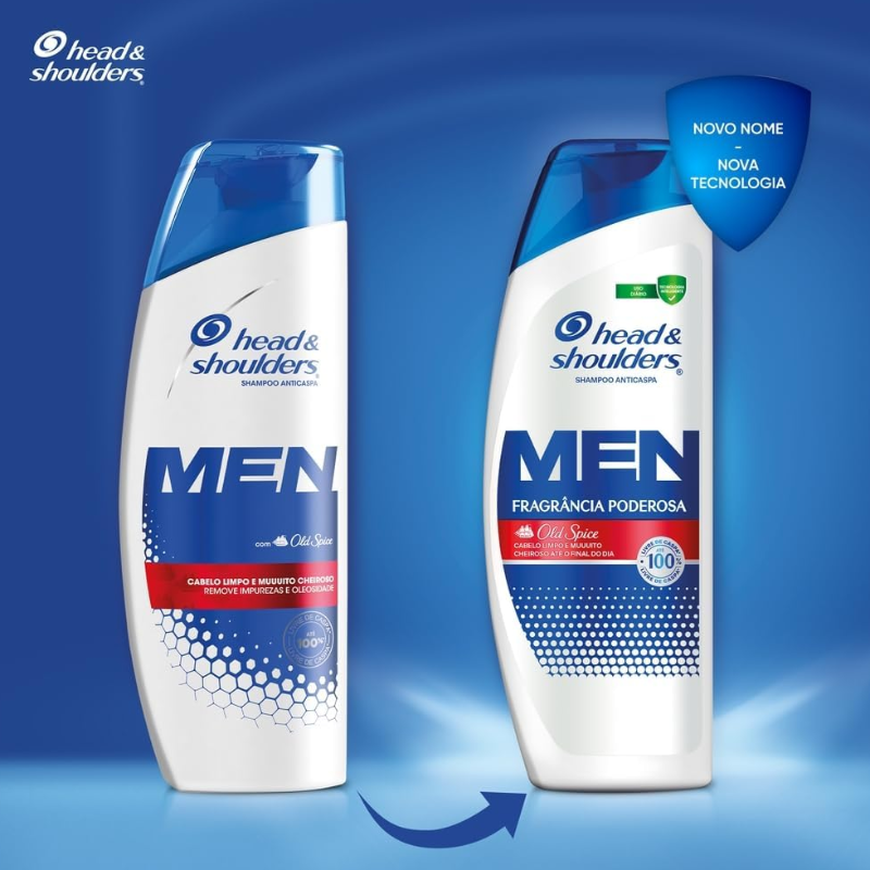 O shampoo anticaspa masculino Head & Shoulders MEN com fragrância Old Spice é uma experiência refrescante e cheirosa para seu banho. Nossa fórmula poderosa limpa, removendo a oleosidade e até 100% das as impurezas dos seus cabelos. A fragrância de Old Spice te garante um cheiro incrível que vai te acompanhar ainda depois do banho. Caspa/impurezas visíveis, com uso frequente.