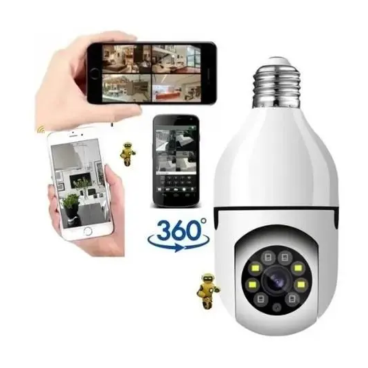 Camera Ip Segurança Lampada Panoramica Wifi Espia C/rastreio Full Hd Visão Noturna