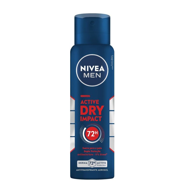 O que é? Desodorante masculino antitranspirante com 48h de proteção contra transpiração e maus odores. Livre de álcool e de conservantes. Garanta o seu! Para que serve o Desodorante Aerosol Nivea Men Dry Impact? Fórmula especial sem corantes nem conservantes combina proteção com suave perfume e frescor o dia todo. Benefícios e diferenciais - 48h de proteção - Pele agradavelmente seca e saudável - 2x mais ativos antitranspirantes e minerais Como usar o Desodorante Aerosol Nivea Men Dry Impact? Agite bem antes de usar. Ao aplicar o produto, mantenha o frasco a aprox. 15 cm da axila. Espere secar antes de se vestir. Uma unidade de embalagem contém 150ml