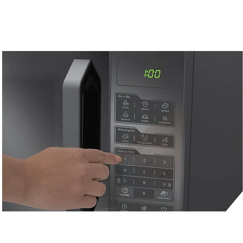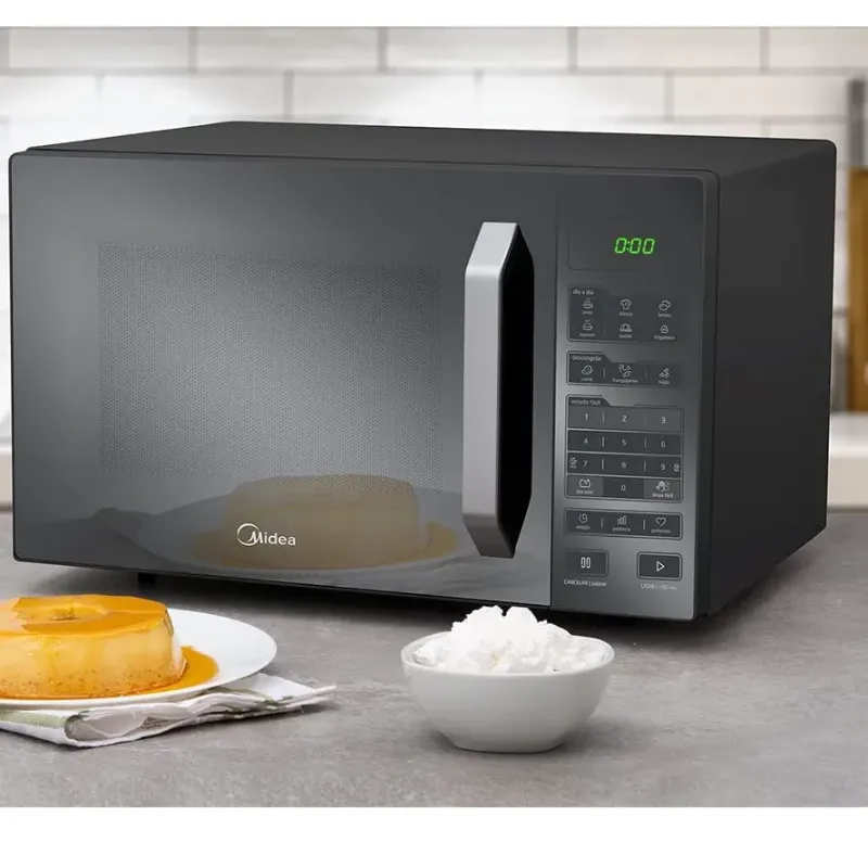O Micro-ondas Midea vai se tornar seu melhor amigo na cozinha. Retirar xícaras e canecas vai ser muito mais fácil: possui Prato Inteligente, que retorna a alça dos recipientes para a posição inicial. O Micro-ondas Midea é super completo! Com Função Preferido, é possível deixar salvo o programa e tempo de suas receitas prediletas. Além de todas essas facilidades, conta com Minuto Fácil para acesso rápido de 1,2 ou 3 minutos, Função Tira Odor, Limpa Fácil e Função Eco para mais economia de energia com o visor desligado.