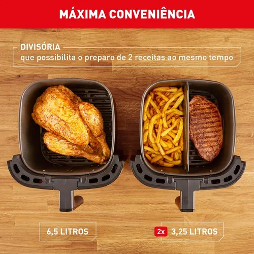 Acompanha uma divisória que permite o preparo de duas receitas diferentes ao mesmo tempo, além de contar com a função SYNC, que garante refeições perfeitamente preparadas e coordenadas.