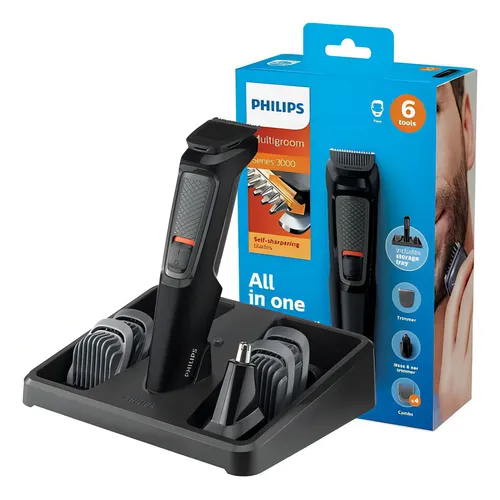 O Multigroom Philips MG3711/15 foi desenvolvido para durar: suas lâminas em aço inoxidável protegem a pele contra irritações, são auto afiáveis e não precisam ser lubrificadas, mesmo após anos de uso. Inclui 6 acessórios além de suporte para armazenamento.