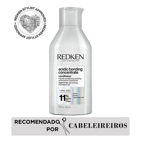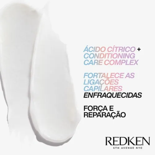 Existem inúmeras maneiras de danificar os cabelos: processos químicos, exposição ao sol e por processos de aquecimento, como secadores de cabelos e pranchas. Este condicionador é o 2º passo de 3 etapas de um sistema de reparação de danos. Sua fórmula contém ácido cítrico e Redken Bonding Complex, ativos que promovem resultados instantaneamente visíveis. O uso do sistema completo Redken Acidic Bonding Concentrate resulta em 82% menos pontas duplas, 56% menos quebra e 11x mais maciez.