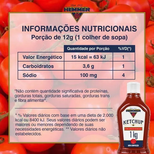 Apreciado por muitos, o Ketchup Hemmer é livre de glúten e de gorduras trans, tornando-se uma escolha saudável para quem se preocupa com a alimentação. Embora não seja vegano, sua composição rica em sabor e qualidade se destaca em cada porção. Experimente combiná-lo com batatas fritas, hambúrgueres, sanduíches e muito mais.