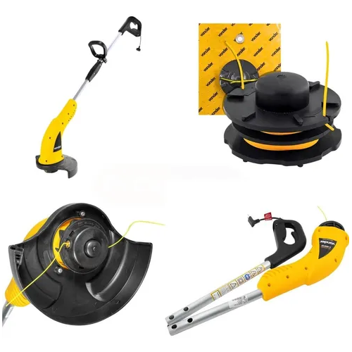 Indicado para acabamentos em jardins, bordas de canteiros rente a árvores, entre plantas, árvores, calçadas, muros e outros obstáculos. Permite a realização de trabalhos mais intensos, porém pode ficar ligado continuamente por, no máximo, 30 minutos. Nunca utilizar o equipamento sem a saia de proteção, com a grama molhada ou mato alto. Carretéis indicados para reposição: 68.99.097.300 (completo) / 68.99.097.400 (interno, sem capa).