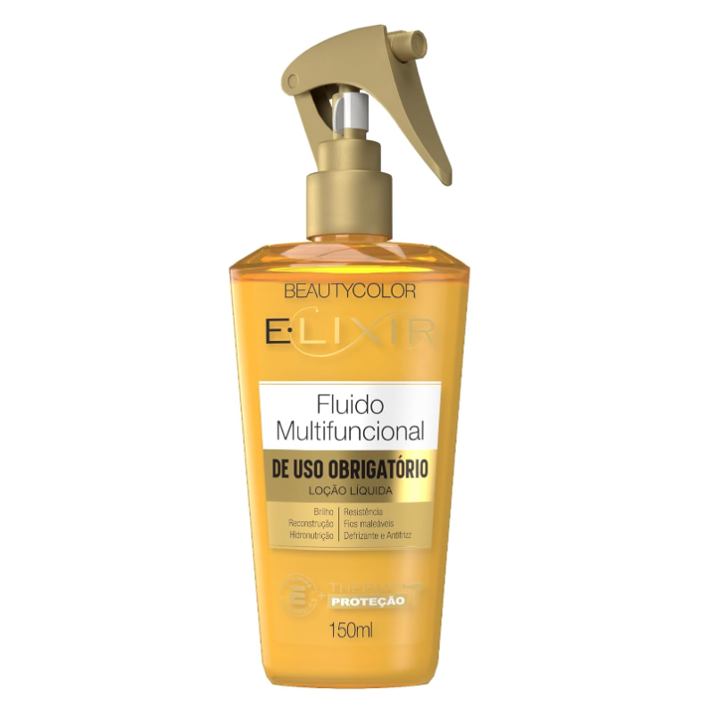 O E.LIXIR Uso Obrigatório foi desenvolvido para proporcionar cuidado intenso aos cabelos, devolvendo hidratação e nutrientes indispensáveis para a saúde da fibra capilar. Sua função multiuso permite que ele seja utilizado tanto como máscara líquida quanto como leave-in finalizador, oferecendo um tratamento intensivo com ação imediata e proteção térmica para os fios. Indispensável para quem deseja cabelos brilhantes, nutridos e protegidos desde a primeira aplicação, este fluido é a solução completa para cabelos saudáveis e radiantes.