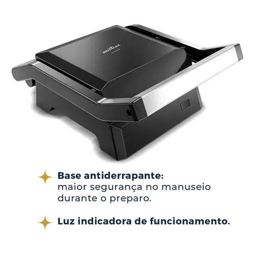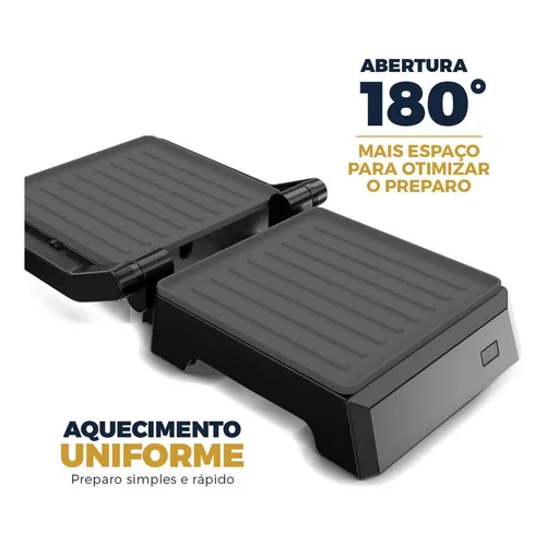 Com abertura de 180 graus, você tem o espaço ideal para preparar hambúrgueres suculentos, carnes no ponto certo, sanduíches crocantes e muito mais.