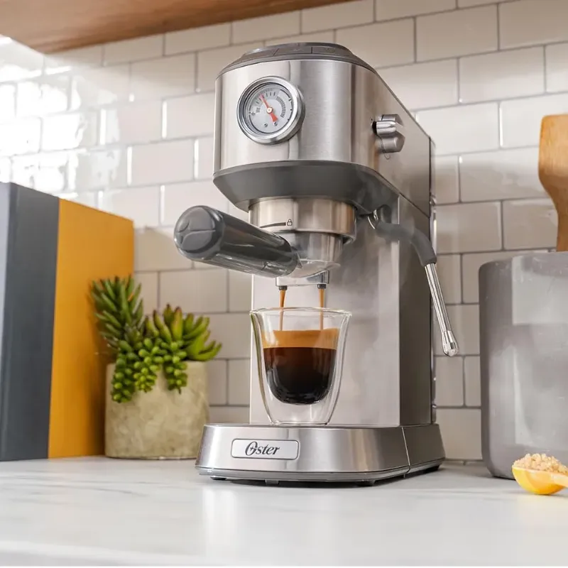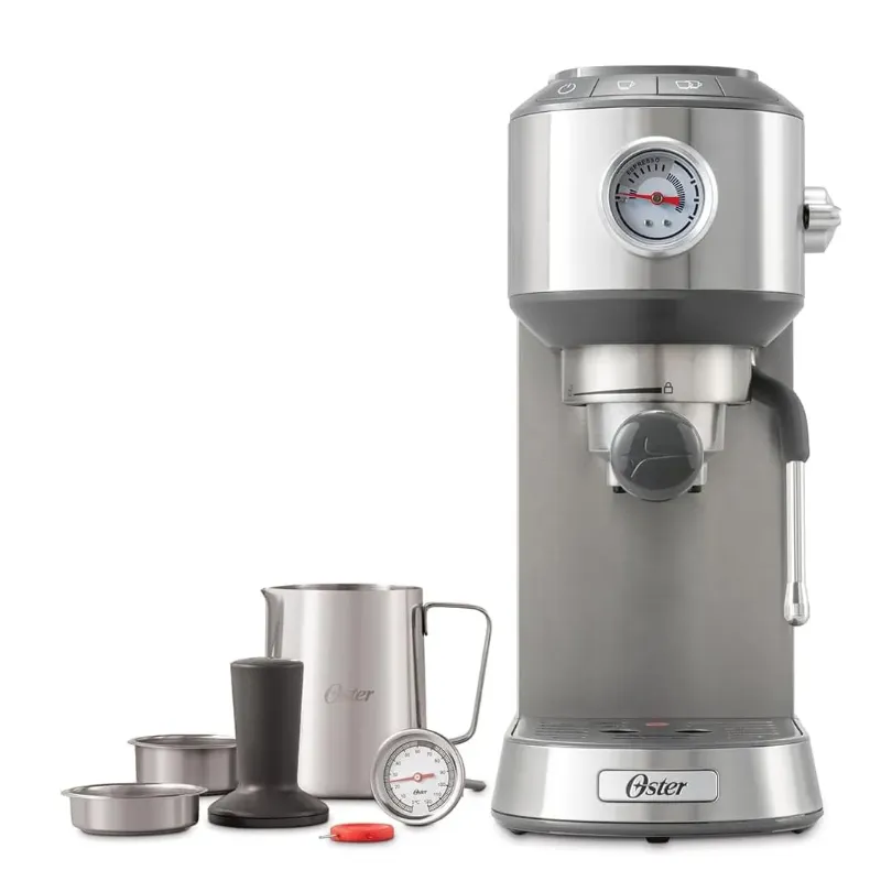 Esse kit contém os seguintes itens: Cafeteira Espresso Oster Compacta Perfect Brew - BVSTEM7200 A síntese perfeita da sua experiencia com café! Viva uma experiência única em casa. Com design moderno, a Cafeteira Copacta para Espresso e Capuccino Oster combina o melhor da tecnologia para garantir precisão absoluta na extração, levando o máximo em sabor para cada xícara. Medidor de Pressão; Espumador de Leite e Termômetro; Tecnologia Thermoblock para Extrair o Verdadeiro Sabor do Café; 15 Bars de Pressão. - Medidor de Pressão: Domine a arte de preparar um café impecável. O medidor de pressão permite que você controle o fluxo para extrair um espresso perfeito e ao seu gosto. - Dica para extração ideal: Leitura do Indicador de Pressão: Agulha dentro da área para espresso; Saída do Café: Fluxo constante por 20 a 30s; Moagem do Café: Perfeita – nem muito grossa, nem muito fina. Compactação do Café: Força de compactação correta. De 9 a 13kg Espumador de Leite e Termômetro: Crie a espuma de leite perfeita. Com o termômetro, você controla a temperatura ideal para cada tipo de leite, alcançando a textura e o sabor perfeitos. Confira abaixo como espumar 0 leite de forma ideal. - 15 Bars de Pressão e Tecnologia Thermoblock: Sistema avançado com 2 aquecedores de tecnologia Thermoblock independentes. Garante um aquecimento rápido, temperatura ideal e melhor extração do café e creme, criando bebidas de qualidade superior. - Design Compacto em Aço Inoxidável: Um design moderno e compacto que se destaca em qualquer ambiente. E um elegante acabamento em aço inoxidável. Uma cafeteira meticulosamente projetada para aprimorar cada detalhe da sua jornada pelo sabor perfeito. CAFETEIRA COMPACTA PARA ESPRESSO E CAPPUCCINO OSTER Descubra o poder do café gourmet em sua própria casa. Dimensões [LxAxP]: 150x315x320mm Selo de Segurança OCP UL Garantia (meses):12 Kit para Vinho Oster Inspire - FPSTBW8055 O Kit Vinho vem em um moderno e prático estojo que acomoda todos os acessó