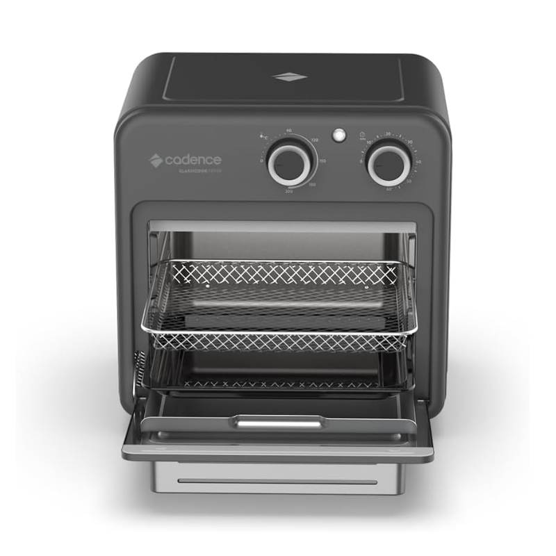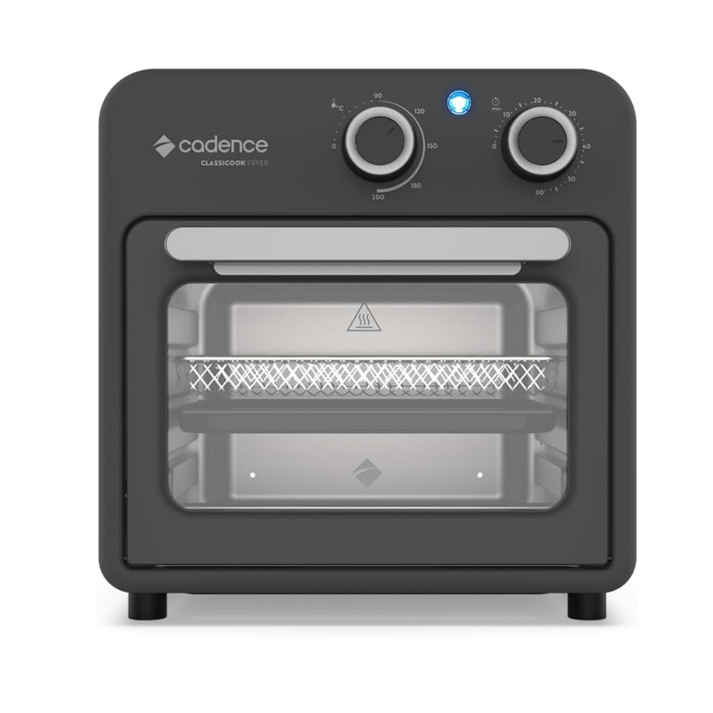 Com design retrô e grande capacidade de 9L, a Classicook Fryer Cadence é ideal para quem busca praticidade sem abrir mão do estilo. Seus acessórios, incluindo prateleira e grelha com alturas ajustáveis, permitem preparar múltiplos pratos ao mesmo tempo sem ocupar mais espaço na bancada, tornando o dia a dia mais ágil e eficiente. A Classicook Fryer oferece 1500W de potência, atingindo rapidamente a temperatura ideal, até mesmo para grandes quantidades de alimentos. O visor transparente possibilita acompanhar o preparo sem precisar abrir a bandeja, atingindo o ponto exato da receita. Combine funcionalidade com estilo para sua cozinha! Produto com 1 ano de garantia.
