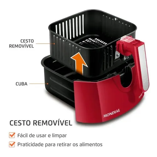 Com capacidade de 4 litros, a Air Fryer Mondial AFN 40 FR oferece espaço generoso para preparar porções deliciosas para toda a família. Seu design compacto e elegante se adapta facilmente a qualquer ambiente, proporcionando um toque de modernidade à sua cozinha