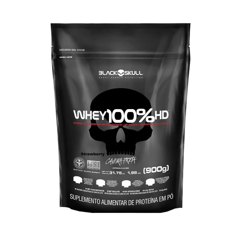Whey 100% Hd - 900G Refil Morango, Black Skull
