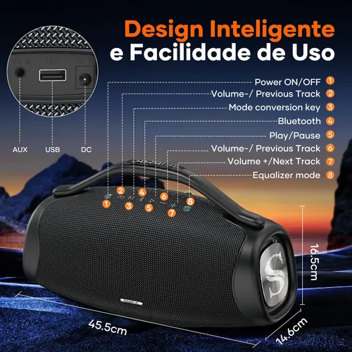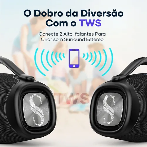 Curta um som potente e de alta definição com a SABALA DR-909 Caixa de Som! A caixa de som portátil foi projetada com sistema de som de 2 vias - 1 subwoofer, 2 midrange e 2 tweeters -, além de ter dois radiadores passivos laterais, 200W RMS de potência e o DNA Brasileira da marca SABALA. Com o certificado IPX6, você e sua turma podem ouvir sua playlist favorita na beira da piscina ou na praia sem preocupação, já que a SABALA DR-909 é resistente a jatos potentes de água e tem proteção total contra poeira. Incrível, né?