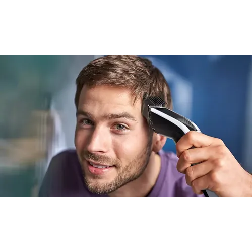 O cortador de barba e cabelos HC5610/15 foi desenvolvido para durar: suas lâminas em aço inoxidável protegem a pele contra irritações, são auto afiáveis e não precisam ser lubrificadas. Ele oferece versatilidade com 28 opções de tamanhos de corte, além de tecnologia que evita que os cabelos fiquem presos no aparelho. Possui 2 anos de garantia e 90 dias para testar*.