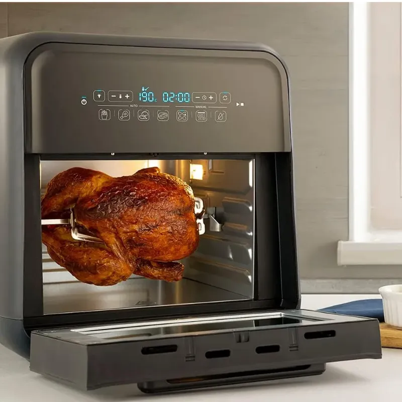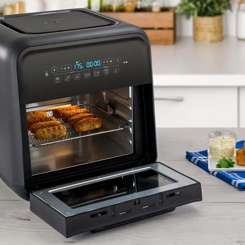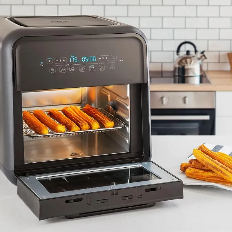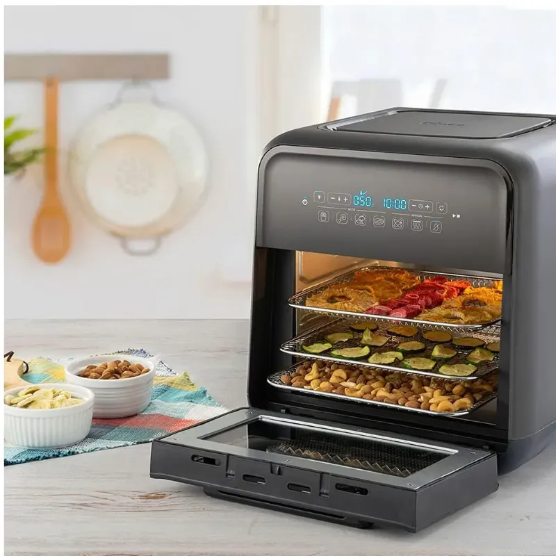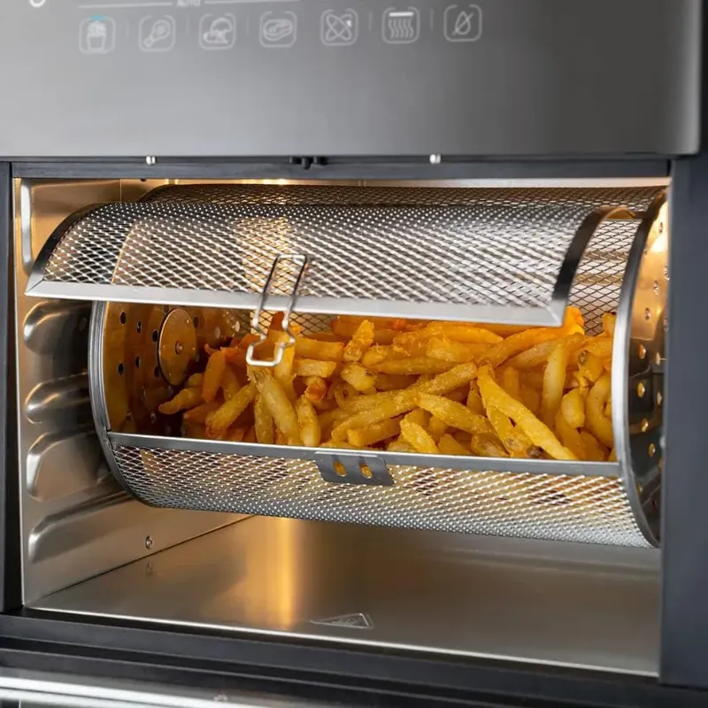 Descrição do Produto Usa 99,5% menos óleo*. Resultados rápidos e deliciosos. Conheça a nova Fritadeira Super Fryer Oster e suas múltiplas funções: Fritar sem óleo, assar, usar o espeto giratório e até desidratar. Comum design moderno, ela é perfeita para o dia a dia e garante refeições mais leves e saudáveis. Os acessórios inclusos tornam tudo ainda mais fácil e prático. Prepare-se: vem aí o aliado ideal para as mais variadas receitas. Tecnologia 3 em 1: Assa, frita sem óleo e desidrata. Exclusiva função para desidratar alimentos: Preserve a garanta uma duração muito superior a um alimento fresco, mantendo grande parte do seu valor nutricional. Ideal para frutas, vegetais, ervas aromáticas, leguminosas, sementes, carne, peixe, e cereais. 7 funções pré-progamadas: Mais praticidade para o seu dia a dia. 3 funções para personalizar a sua receita. Escolha a função que você desejar: Air Fryer, Forno ou Desidratadora, a temperatura que você quiser preparar sua receita e o tempo de preparo. 4 Funções Pré- Programadas: Fritar – Faça batatas fritas perfeitas e crocantes, livres de gordura e óleo. Asas – Asinhas de frango sequinhas e crocantes. Legumes – Ideal para legumes mais grossos, como brócolis, cenouras, couve-flor, vagem e aspargos. Filé – Prepare filés de 1,3 a 2,5 centímetros a 2,5 centímetros de espessura, no ponto certo, rosados no meio. 10 litros de capacidade: Muito mais espaço que as fritadeiras comuns. Porta de vidro com luz interior: Possibilita monitorar o preparo dos alimentos sem abrir a mesma. Acessórios para você fazer tudo! Cesto de malha rotativo:- Ideal para preparar batatas fritas, legumes, asas de frango, iscas, oleaginosas e muito mais. - Garante uma fritura por completo.- Sem óleo. Espeto rotativo: - Faça frangos inteiros, costelas, carnes inteiras com segurança e perfeição. 3 grelhas com fluxo de ar: - Faça peito de frango, peixes, filés tenros e crocantes, como você quiser.- Ideal para desidratar seus alimentos favoritos. Bandeja coletora removível: - Facilidade para a limpeza da sua Super Fryer. Gancho - Para colocar e retirar acessórios. * Atenção: sempre utilize luvas de proteção ao manusear sua Super Fryer Oster.Selo de Segurança OCP UL_CKSTAFOV3 resultados rápidos e deliciososConheça a nova Fritadeira Oster® Super Fryer e suas múltiplas funções: fritar sem óleo, assar, usar o espeto giratório e até desidratar. Os acessórios inclusos tornam tudo ainda mais fácil e prático. Acessórios pra você fazer tudo Cesto de malha rotativo: Ideal para preparar batatas fritas, legumes, asas de frango e muito mais. Espeto rotativo: Faça frangos inteiros, costelas, ou carnes. 3 grelhas com fluxo de ar: Faça peito de frango, peixes ou filés. Ideal para desidratar seus alimentos. Bandeja coletora removível: Facilidade para a limpeza da sua Super Fryer. Gancho: Para colocar e retirar acessórios. ÚNICA NO MERCADO COM função para desidratar alimentos Preserve as qualidades de um alimento fresco e mantenha grande parte de seu valor nutricional desidratando por até 20 horas frutas, vegetais, ervas aromáticas, leguminosas, sementes, carne, peixe, cereais e o que mais você desejar. ÚNICA NO MERCADO COM função para desidratar alimentos Preserve as qualidades de um alimento fresco e mantenha grande parte de seu valor nutricional desidratando por até 20 horas frutas, vegetais, ervas aromáticas, leguminosas, sementes, carne, peixe, cereais e o que mais você desejar. 7 funções para o seu dia a dia 4 funções pré-programadas Fritas, Asas, Legumes, Filé 3 funções para personalizar a sua receita Escolha Air Fryer, Forno ou Desidratadora, a temperatura que você quiser preparar, sua receita e o tempo de preparo. 10 litros Muito mais espaço que as fritadeiras comuns. 10 litros Muito mais espaço que as fritadeiras comuns.