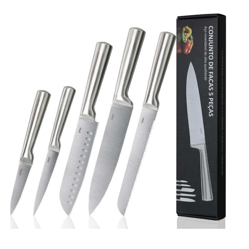 LUMAI Conjunto de 5 Facas Profissionais em Aço Inoxidável 3CR13