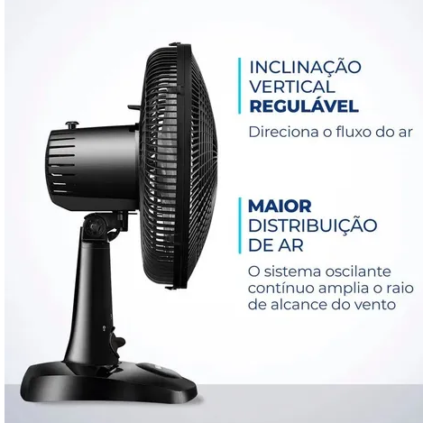 como Ele Faz Menos Barulho, com Qualquer Uma Das 3 Velocidades, Você Dorme com Ventinho e Silêncio Garantidos. Para Ambientes Mais Amplos, Você Pode Usar Seu Sistema Oscilante. Já Sua Inclinação Vertical Regulável Direciona o Fluxo de Ar Para Cima ou Para Baixo.