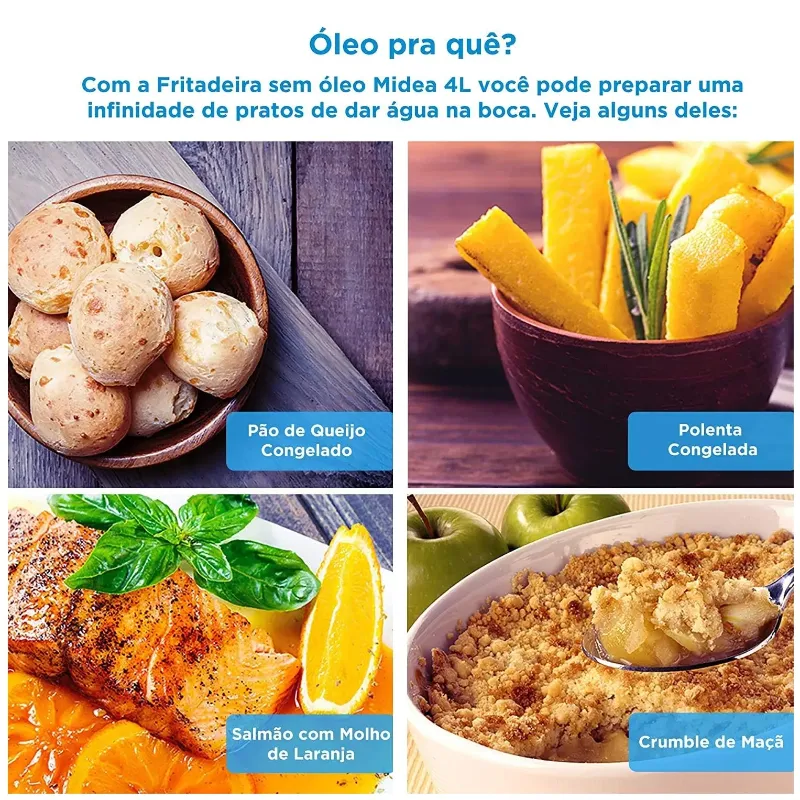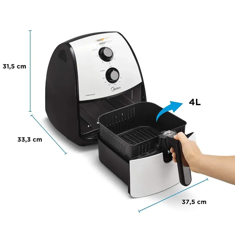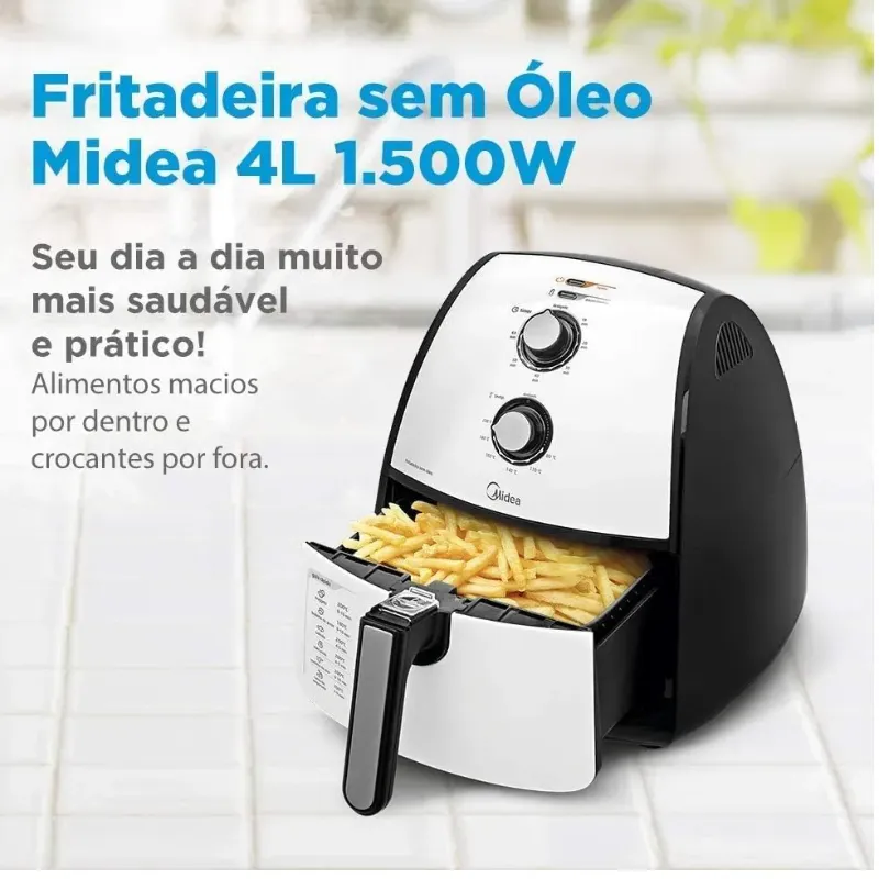 Fritadeira Airfryer Sem Óleo, 4L, Preto e Branco, 220V, Midea