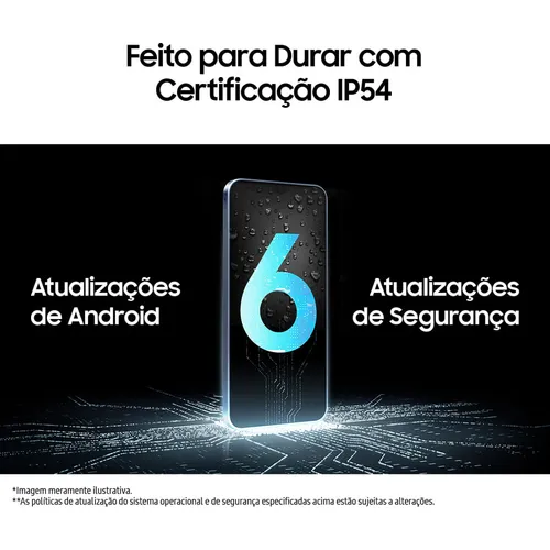 Com certificação IP54, até 6 atualizações de Android e Segurança e uma tela Super AMOLED FHD+ de 6.7”, o Galaxy A16 permite que você mergulhe no seu conteúdo favorito com cores vívidas e uma tela ampla.