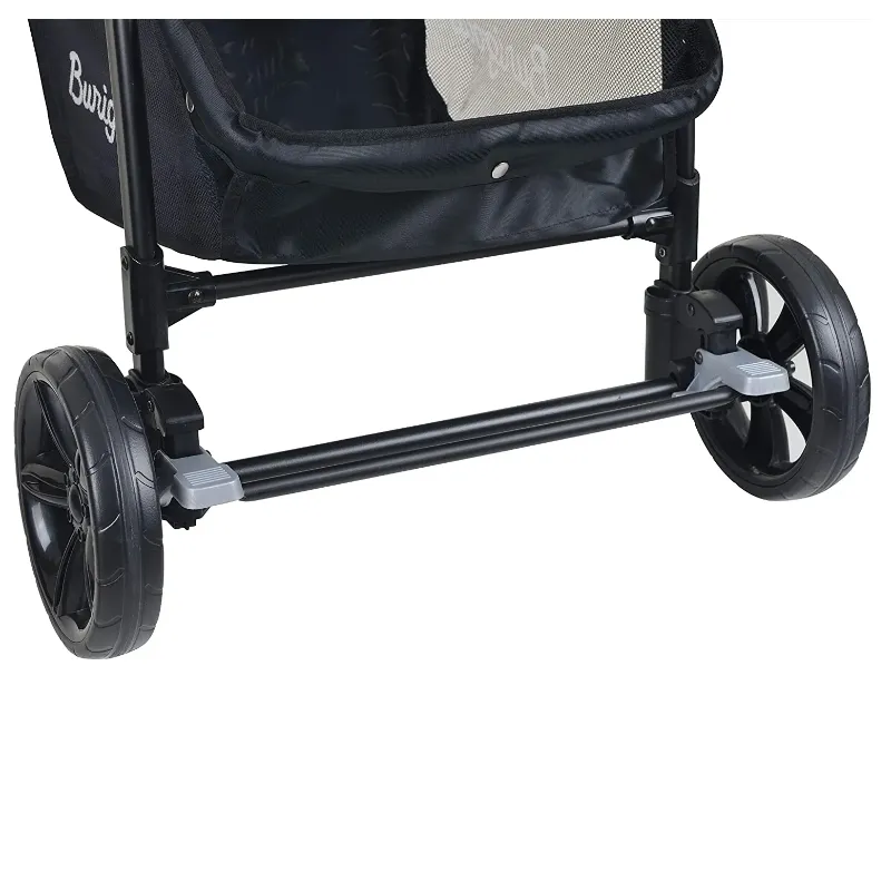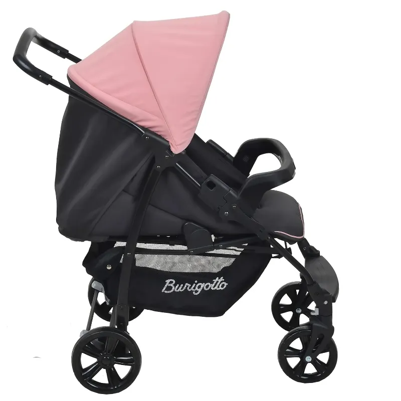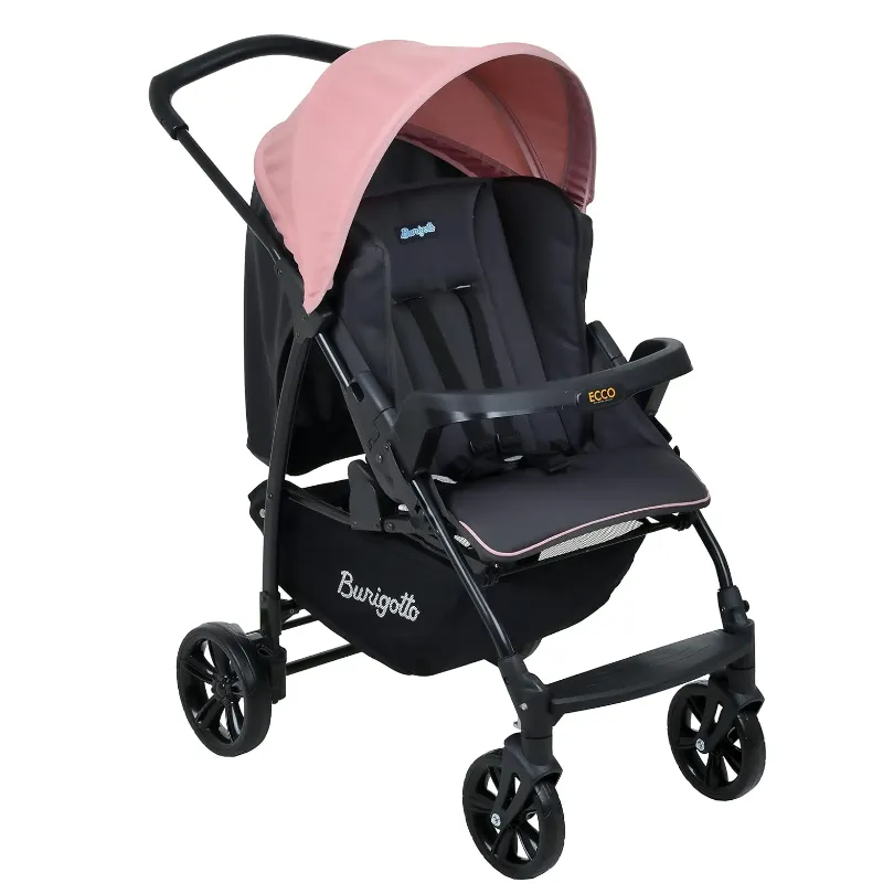 Para crianças recém-nascidas até 15 KG/Encosto reclinável em 4 posições/Capota regulável e removível/Cinto de segurança de 5 pontos/Protetor frontal/Freio traseiro conjugado/Rodas dianteiras com giratórios e trava/Cesto porta-objetos/Trava para fixação da cadeira Touring X.