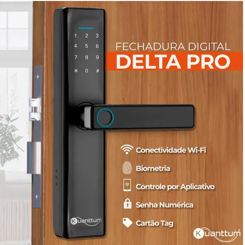 Fechadura Eletronica Digital Com Biometria Senha Kuantttum Delta Pro Tuya Wi-fi