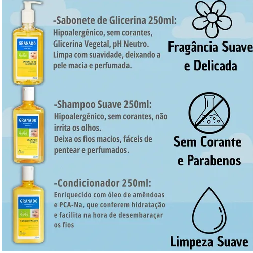 Kit Granado Bebê Shampoo Condicionador Sabonete Líquido