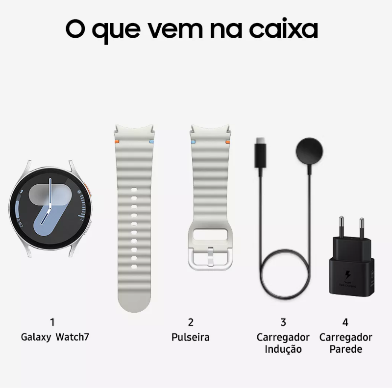 Eleve seu estilo com o Galaxy Watch7. Um design com vidro flutuante e pontos de costura coloridos adicionam um toque de elegância ao seu pulso, enquanto ondulações na pulseira mostram que você está pronto para os exercícios. O relógio está disponível em tamanho pequeno ou grande com três opções de cores: Verde, Prata e Creme.