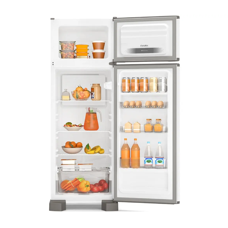 O Refrigerador Esmaltec RCD34 PRO 276L 2 Portas – 127V é a solução perfeita para quem procura uma geladeira duplex com espaço interno bem distribuído, visual moderno e eficiência no consumo. Com 276 litros de capacidade total, sendo 55 litros dedicados ao congelador, o RCD34 oferece um uso inteligente do espaço para conservar alimentos e organizar a rotina da cozinha. O congelador atinge até -18°C, ideal para congelar alimentos com segurança e praticidade. A classificação energética A++ garante uma boa performance com menor consumo de energia. O modelo conta com prateleiras internas reguláveis e removíveis, além de uma gaveta de legumes em PS cristal fumê, que une beleza e funcionalidade. Destaques importantes: iluminação lateral interna, puxadores ergonômicos, pés com niveladores para mais estabilidade e facilidade de limpeza, e a tecnologia Gaxeta Push In, que permite substituir apenas a borracha de vedação, evitando trocas desnecessárias de porta e facilitando a manutenção. Com design limpo, acabamento moderno e excelente aproveitamento de espaço, o Esmaltec RCD34 PRO 127V entrega praticidade, economia e confiabilidade no dia a dia.