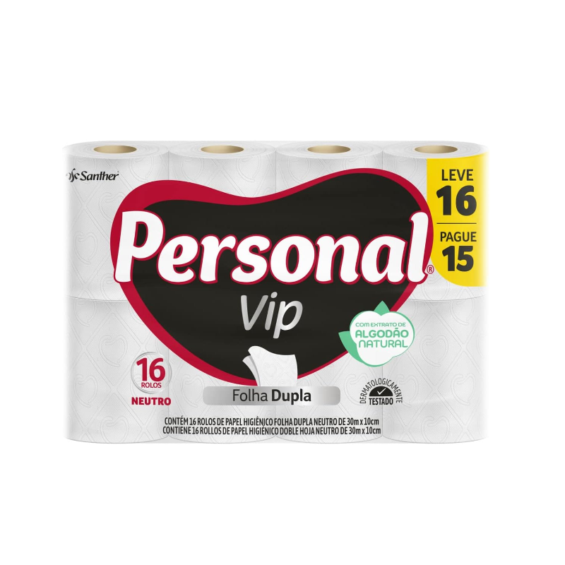 Personal Papel Higiênico Vip Folha Dupla, 16 Unidades