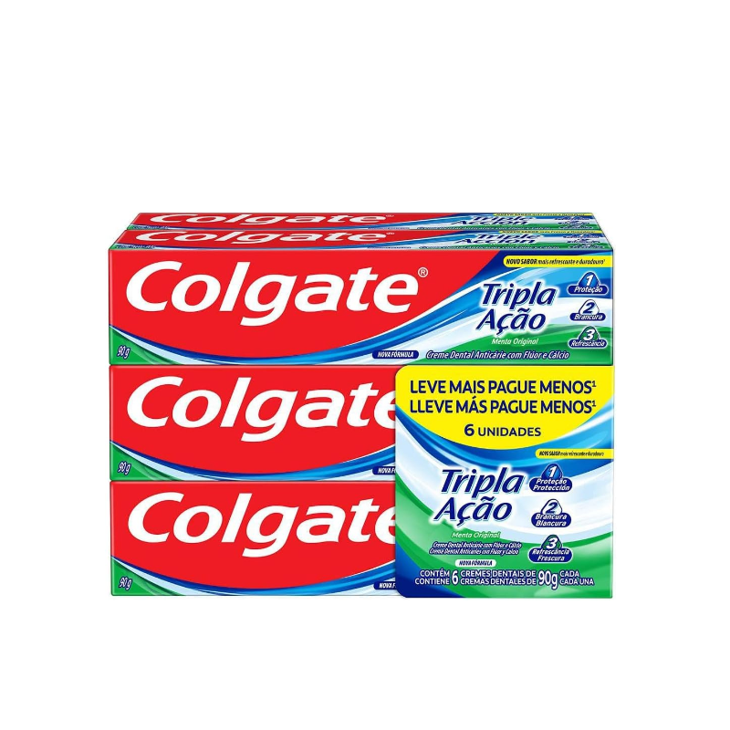 Creme Dental Colgate Tripla Ação Menta Original 90g 6 unidades