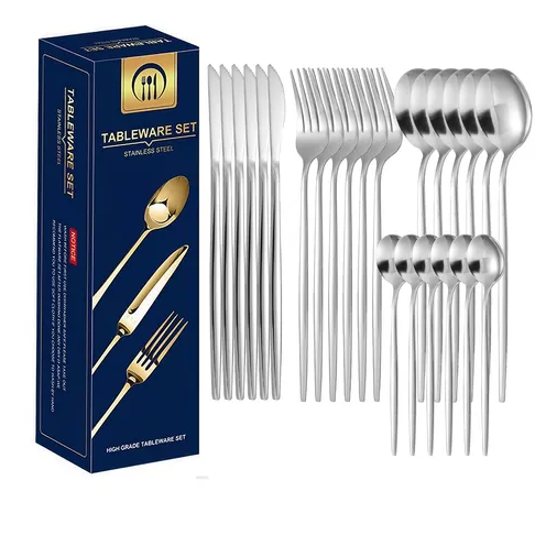 O conjunto inclui 6 facas para bife, 6 garfos de salada, 6 colheres de jantar e 6 colheres de sobremesa, ideal para uso doméstico ou em restaurantes. Seja para o uso diário ou para preparar jantares e eventos, este conjunto de talheres é indispensável.