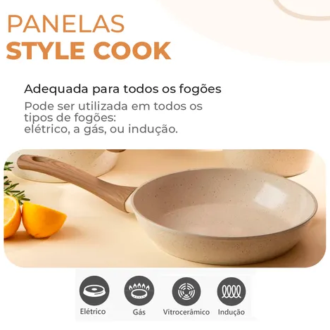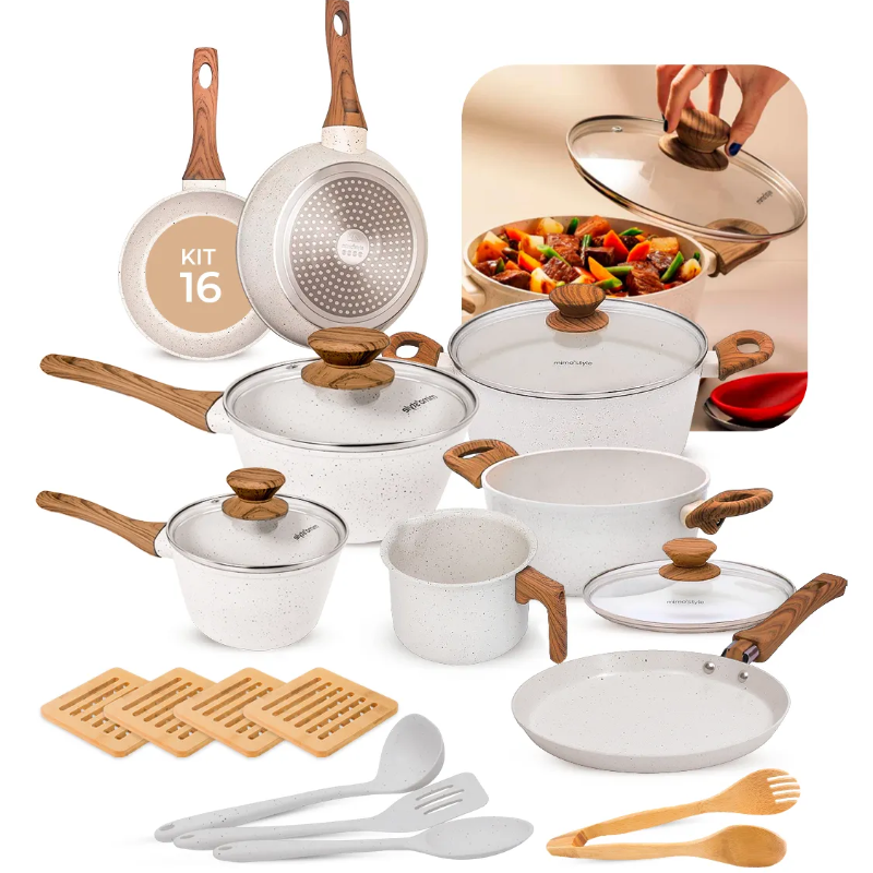 O Conjunto de Panelas Cook Marmol da Mimo Style oferece tudo o que você precisa para preparar receitas com facilidade, estilo e segurança. Com acabamento marmorizado sofisticado e antiaderente de alto desempenho, é ideal para o dia a dia, seja para quem ama cozinhar ou está começando agora.