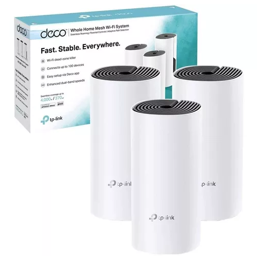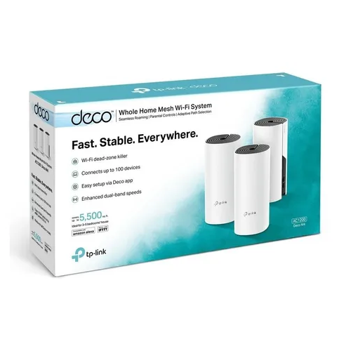 Tenha a melhor experiência Wi-Fi O Deco M4 cobre uma área de até 185m² (1 unidade) e é a maneira mais simples de garantir um forte sinal Wi-Fi em todos os cantos da sua casa! As conexões sem fio de 2.4 GHz e 5 GHz trabalham juntas para fornecer velocidades de rede ainda mais rápidas e cobertura realmente perfeita. Quer mais cobertura? Basta adicionar mais Decos. O Deco M4 usa a tecnologia TP-Link Mesh para cobrir toda a sua casa e eliminar áreas de sombra de Wi-Fi. Várias unidades funcionam perfeitamente em conjunto para criar uma rede.