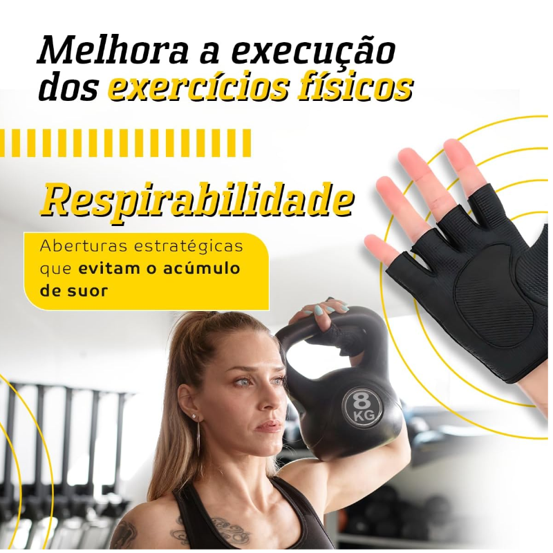 • Proteção avançada para as mãos, evitando calos e bolhas em treinos de musculação, crossfit ou levantamento olímpico.