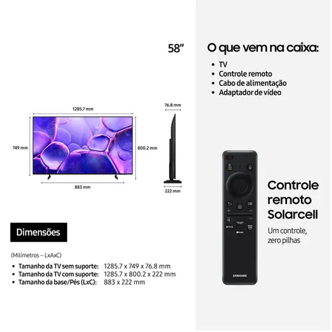 Samsung Smart TV 58" Crystal UHD 4K U8500F 2025, Xbox Cloud Gaming, Canais, AI Energy Mode, Controle sem pilhas, Alexa integrada