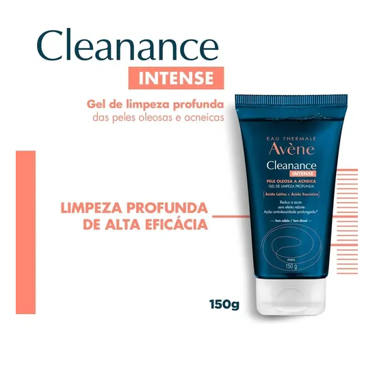 Cleanance Intense é um gel de limpeza diária profunda indicado para pele oleosa ou com tendência a acne. Possui uma combinação exclusiva de ativos inovadores que reduzem a acne, evitam o efeito rebote e garantem ação antioleosidade prolongada.