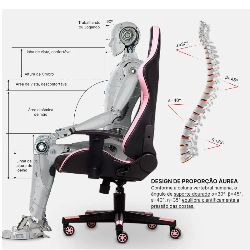 - 【MAIS CONFORTO DURANTE SUA GAMEPLAY】Com almofadas para suporte na região da lombar e cervical, e com encosto reclinável de até 180 graus, sua coluna se mantém na posição correta e confortável por horas, sem te causar dores.