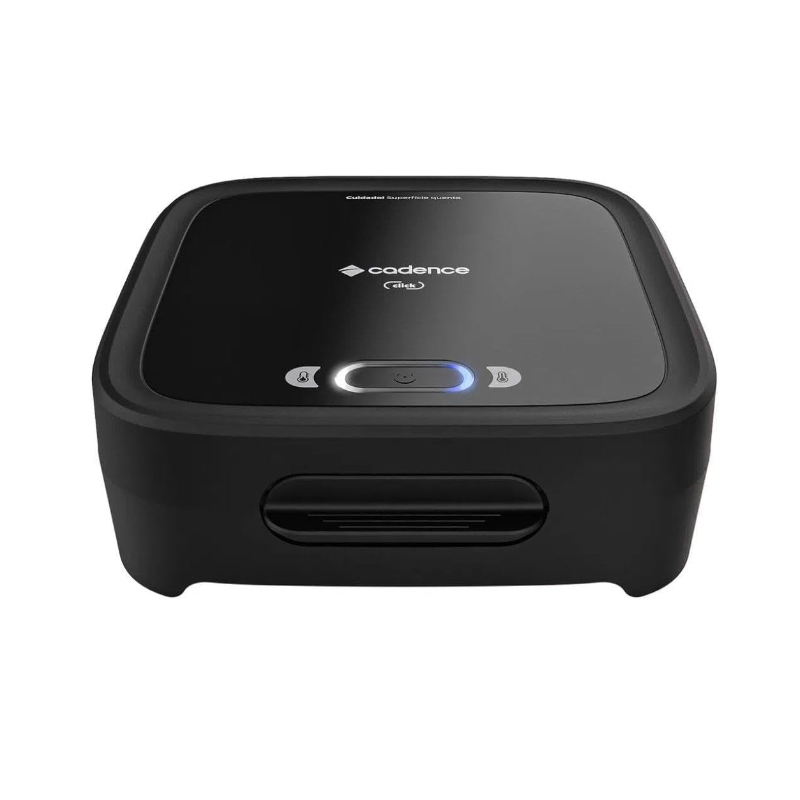 A Sanduicheira Click tem um design único e formato inovador. É a companheira bancada para fazer de tudo um pouco! - Botão Liga/Desliga com LEDs indicadores. - Não precisa tirar da tomada. - Pés firmes. A sanduicheira não tomba. - Chapas Antiaderentes + Profundas - 80% + ESPAÇO mais versátil. - Chapas +SIMPLES DE LIMPAR - Superior grill, Inferior LISINHA!