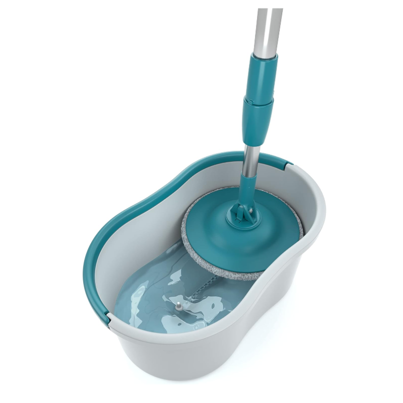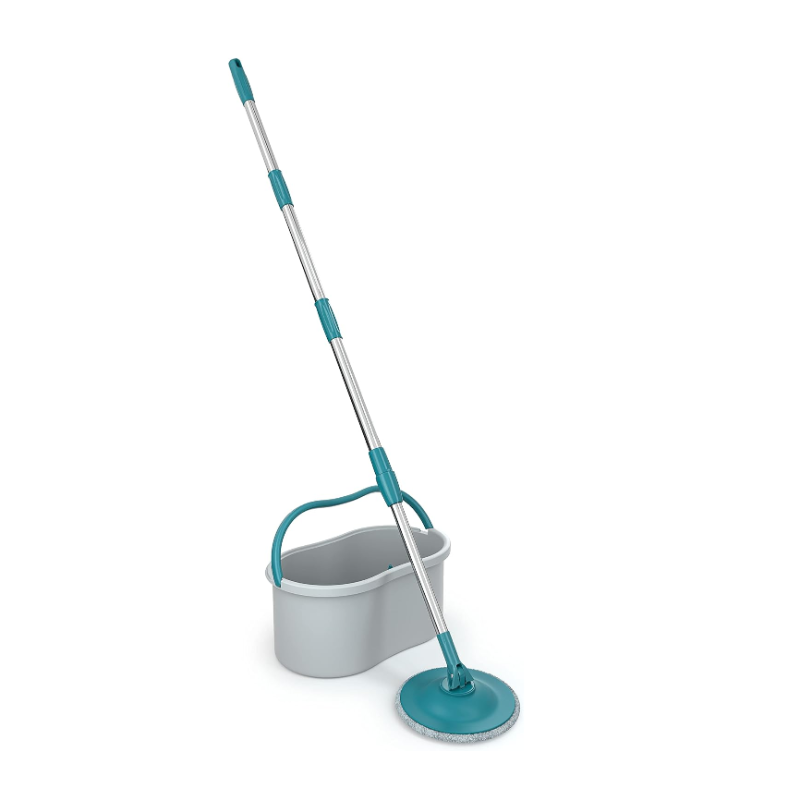 Mop giratório ECO, ideal para pisos frios, sintéticos ou madeira, limpa utilizando menos água e produtos químicos, além de possuir menos plástico em sua composição.