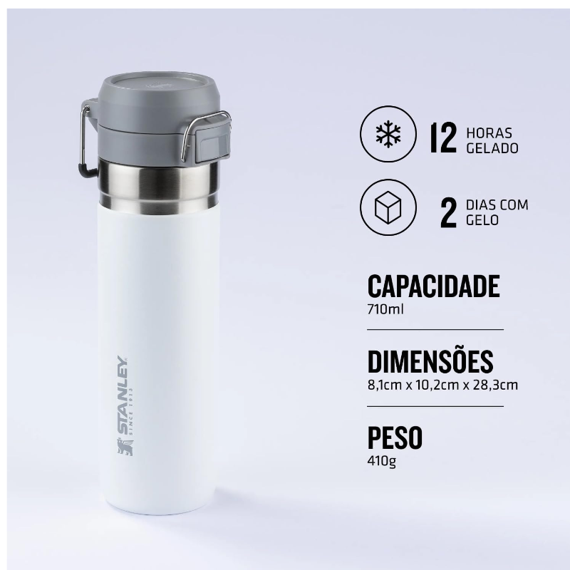 A Garrafa Térmica Quick Flip Stanley 710ml te acompanha em qualquer lugar. Prática e versátil, ela une design clássico com detalhes modernos.