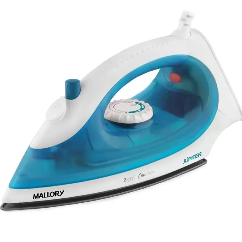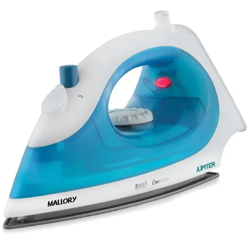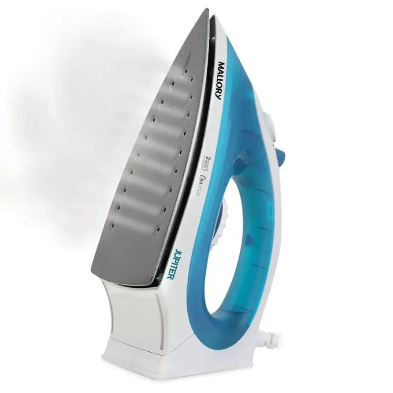 O Ferro a Vapor JÚPITER da Mallory possui base antiaderente e salva botões. O reservatório de água permite quantidade perfeita para o jato de vapor que facilita a remoção dos vincos mais difíceis.