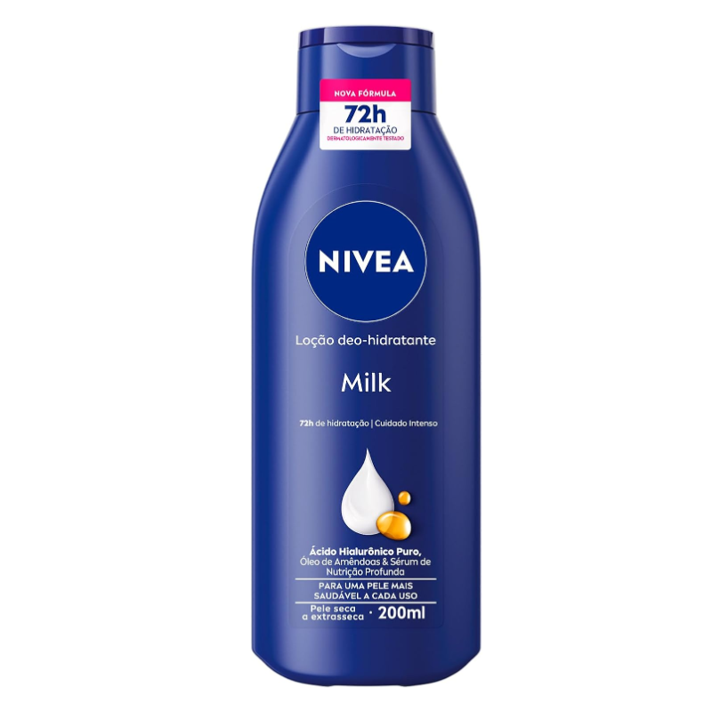 NIVEA Loção Deo-Hidratante Milk 200ml, 72h de hidratação