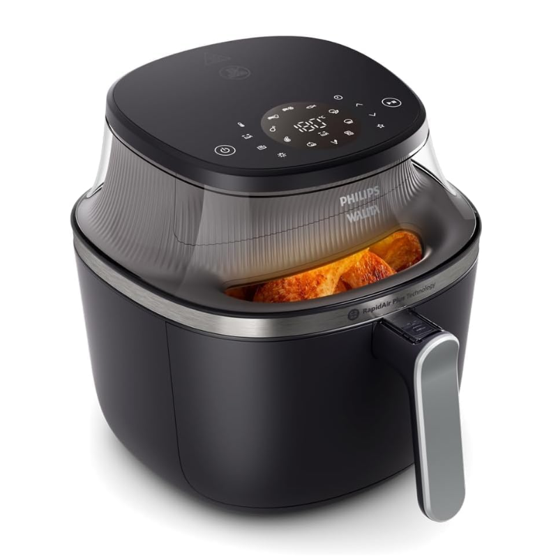Tecnologia Rapid Air Plus, garante alimentos crocantes por fora e macios por dentro, além de um cozimento mais rápido e uniforme.